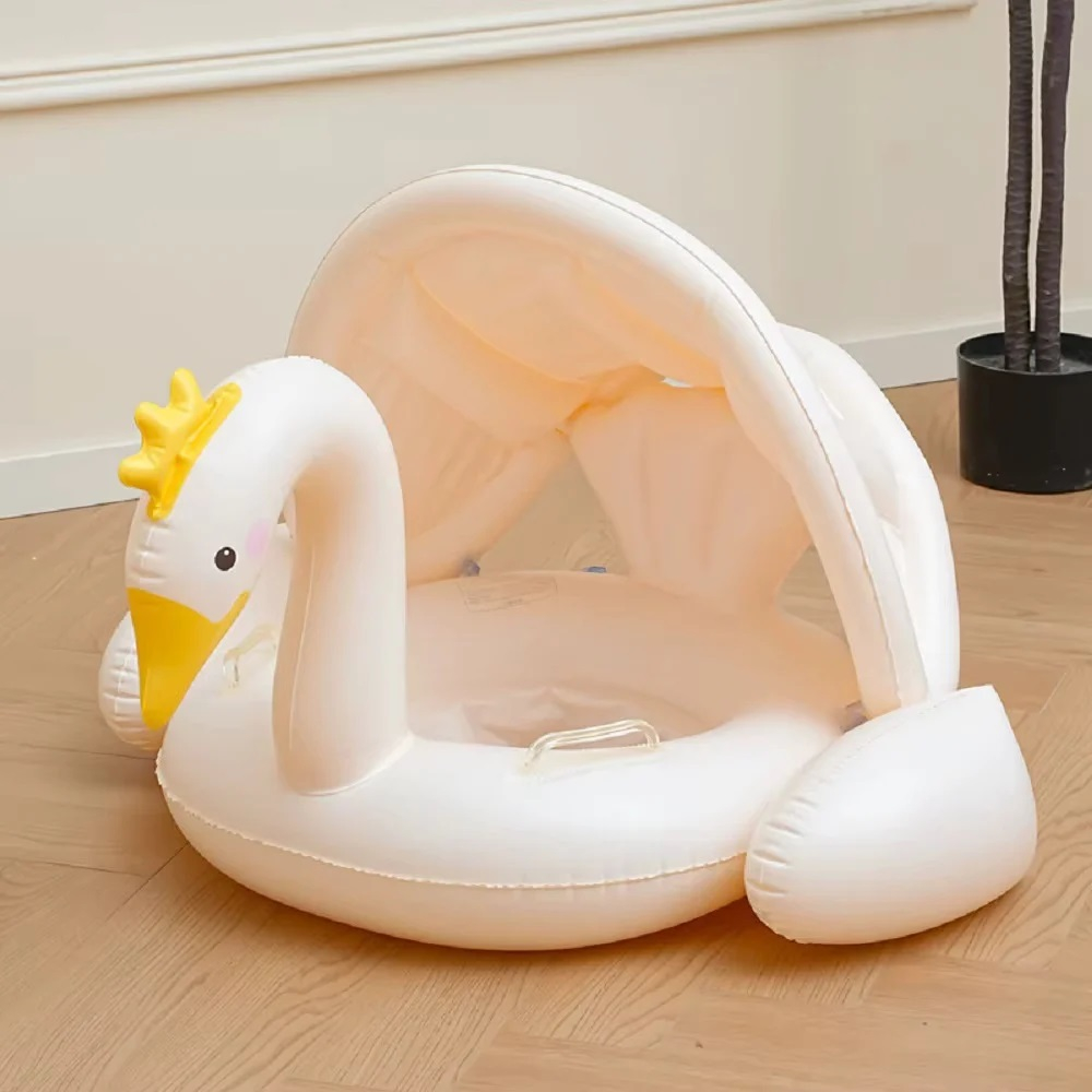 Colac gonflabil barcuta cu parasolar detasabil si suport pentru copii, Lebada, alb