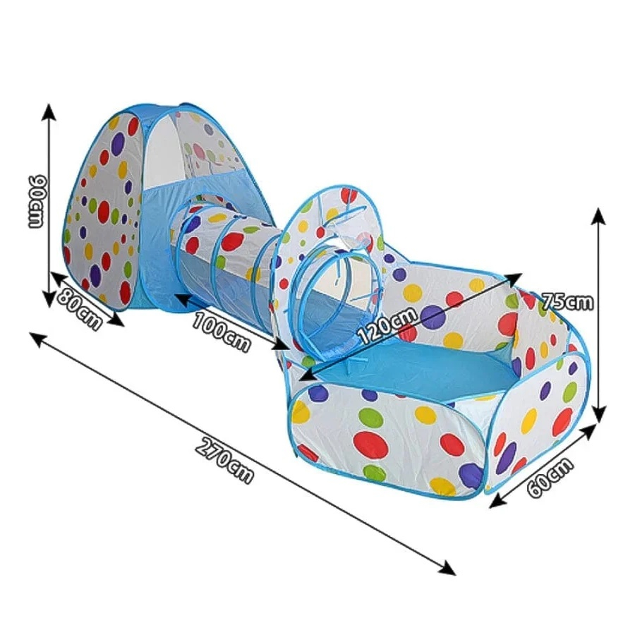 Cort de joaca 3 in 1 ideal pentru copii, format din cort, tunel intermediar si piscina, albastru