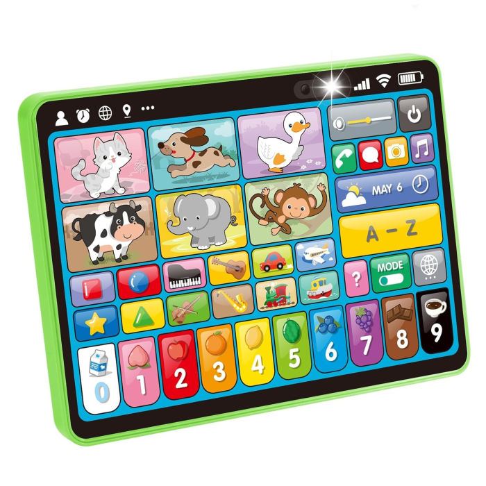 Aceasta tableta educativa reprezinta un joc interactiv ideal pentru copiii de la 12 luni in sus, oferind o alternativa sanatoasa si educativa la ecranele digitale. Cu un design atractiv, culori vii si functii multiple, incurajeaza invatarea prin joaca si sprijina dezvoltarea cognitiva, auditiva si lingvistica a celor mici.