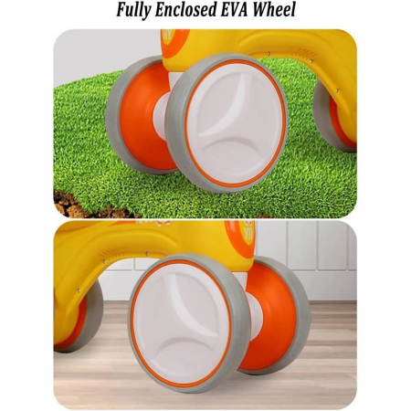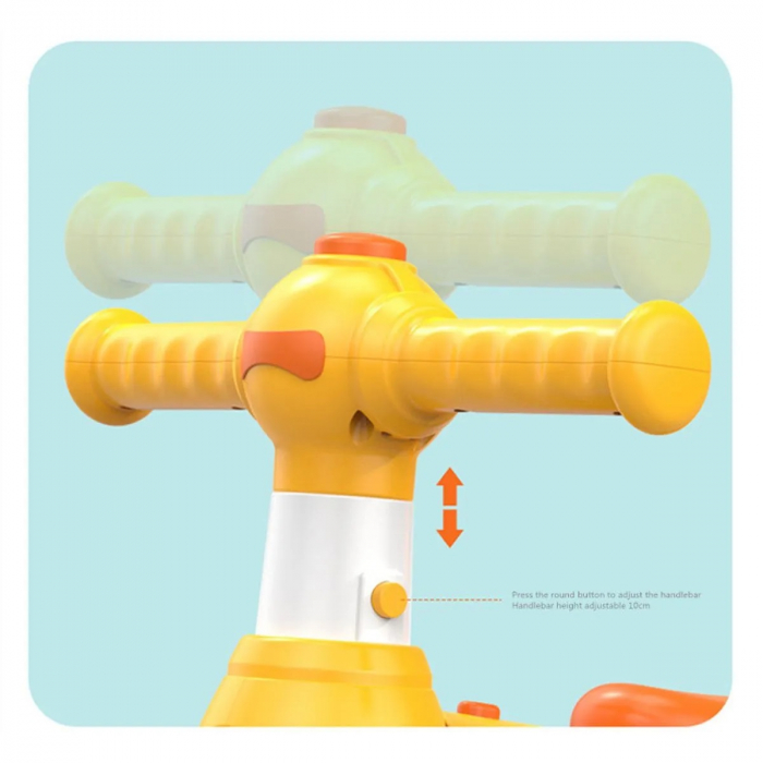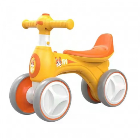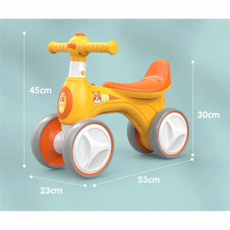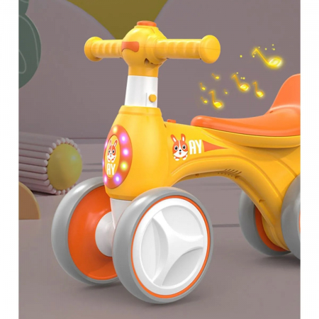 Bicicleta fara pedale cu roti silentioase, pentru copii 1-3 ani, lumini, muzica si baloane de sapun, galben