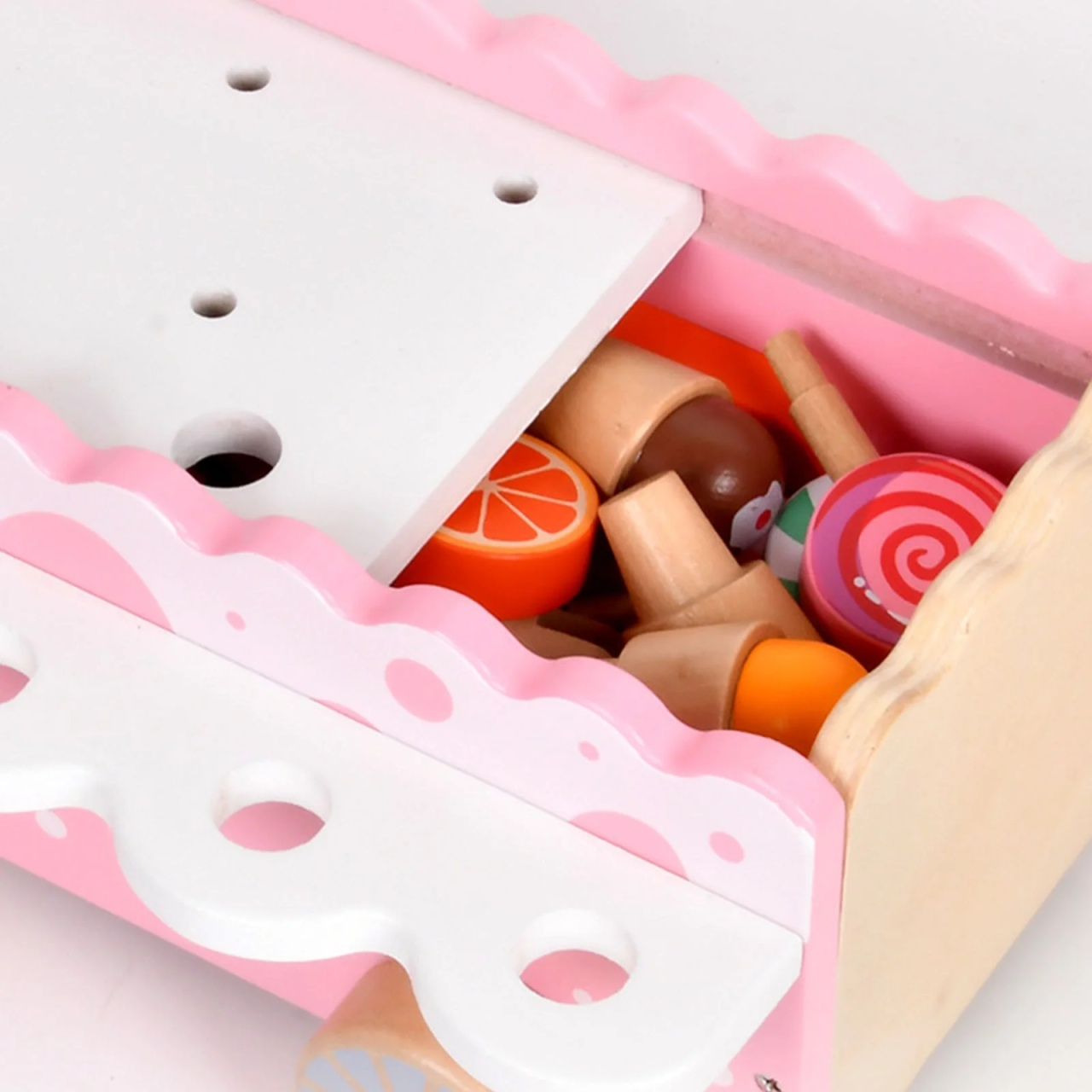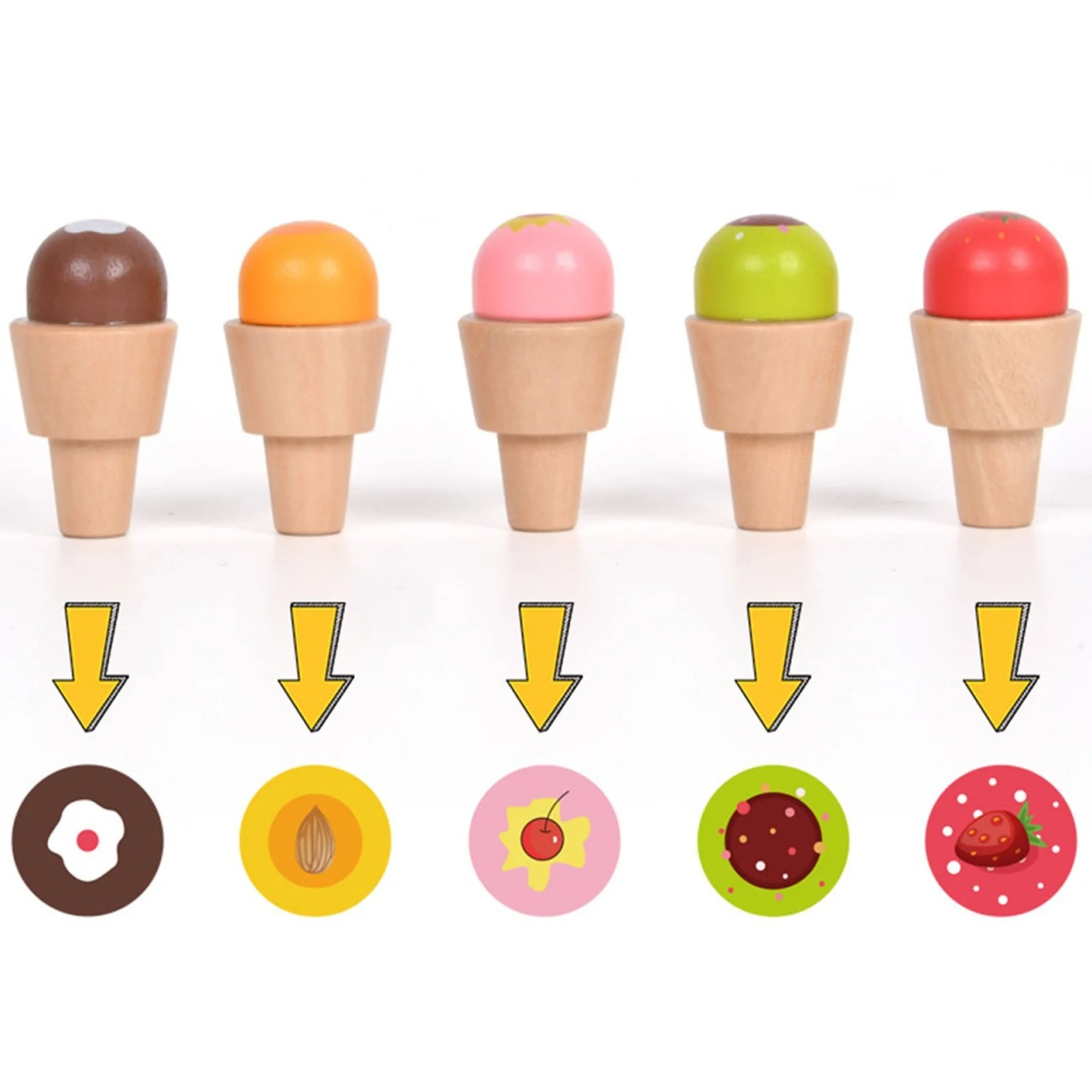 Jocul de rol ii ajuta sa isi dezvolte abilitatile sociale si lingvistice, simuland situatii reale precum vanzarea de inghetata. Culorile vibrante si formele variate stimuleaza perceptia vizuala, iar texturile lemnului le ofera o experienta tactila placuta.