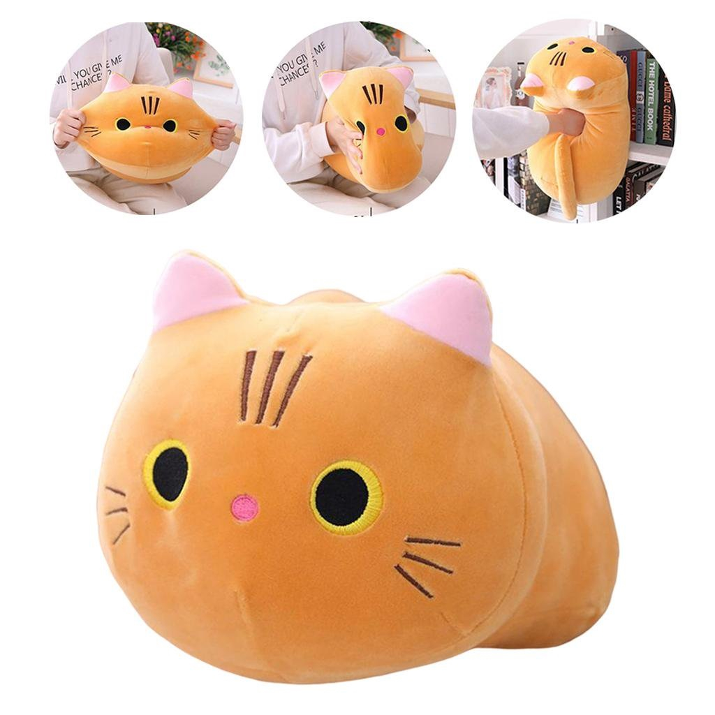 Jucarie de plus Pisica tip perna, umplutura hipoalergenica, 45x26x26 cm, maro