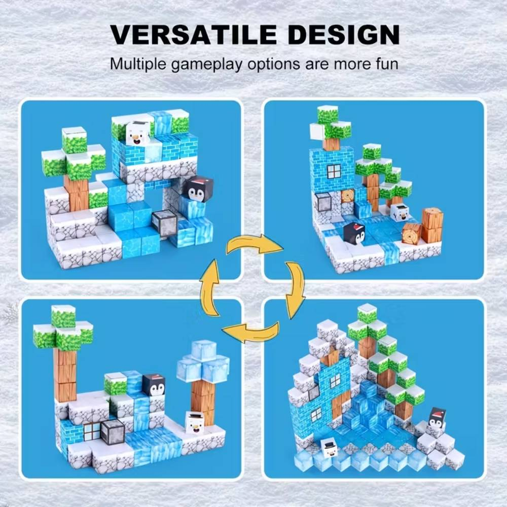 Blocuri magnetice de constructie 3D tip Minecraft. Aceste jucarii constructie stimuleaza creativitatea si imaginatia, permitand realizarea de structuri pixelate colorate. Piesele din plastic, usor de manevrat datorita magnetilor interni, dezvolta coordonarea mana-ochi si gandirea logica. Designul inspirat din Minecraft este potrivit atat pentru baieti, cat si pentru fete. Culorile vii si materialele sigure contribuie la invatarea formelor, culorilor si principiilor STEM. Perfect pentru joaca individuala sau in echipa, acasa sau in calatorii.
