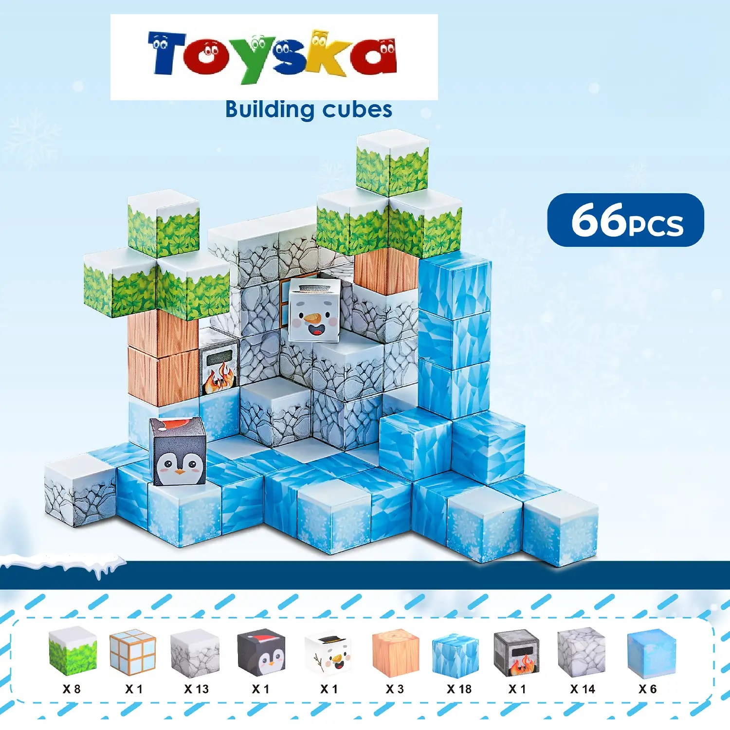 Set cuburi magnetice Creative tip Minecraft Ice, 66 piese, multicolor