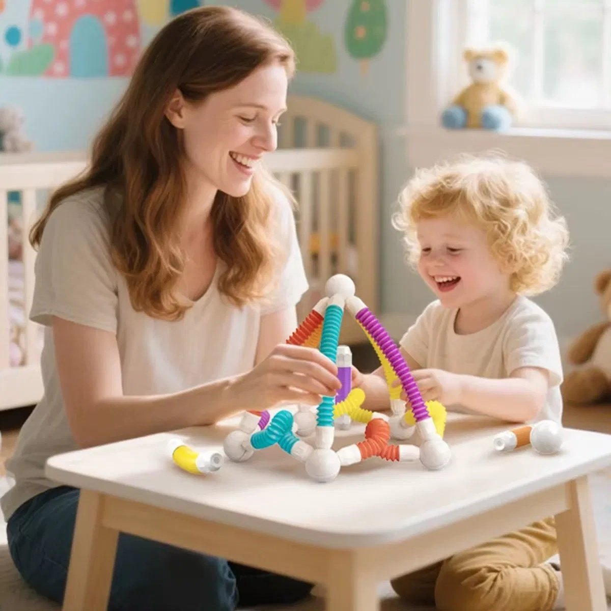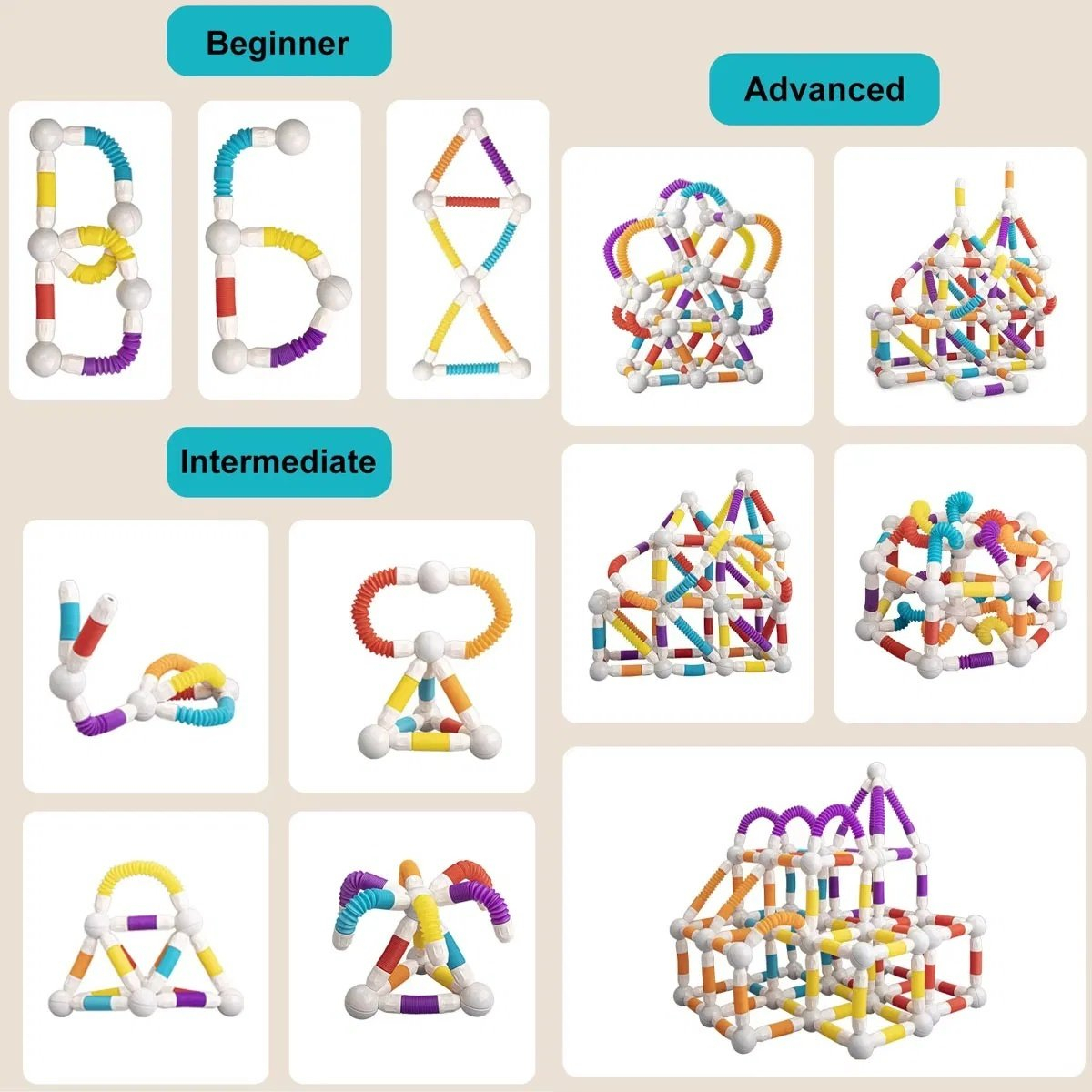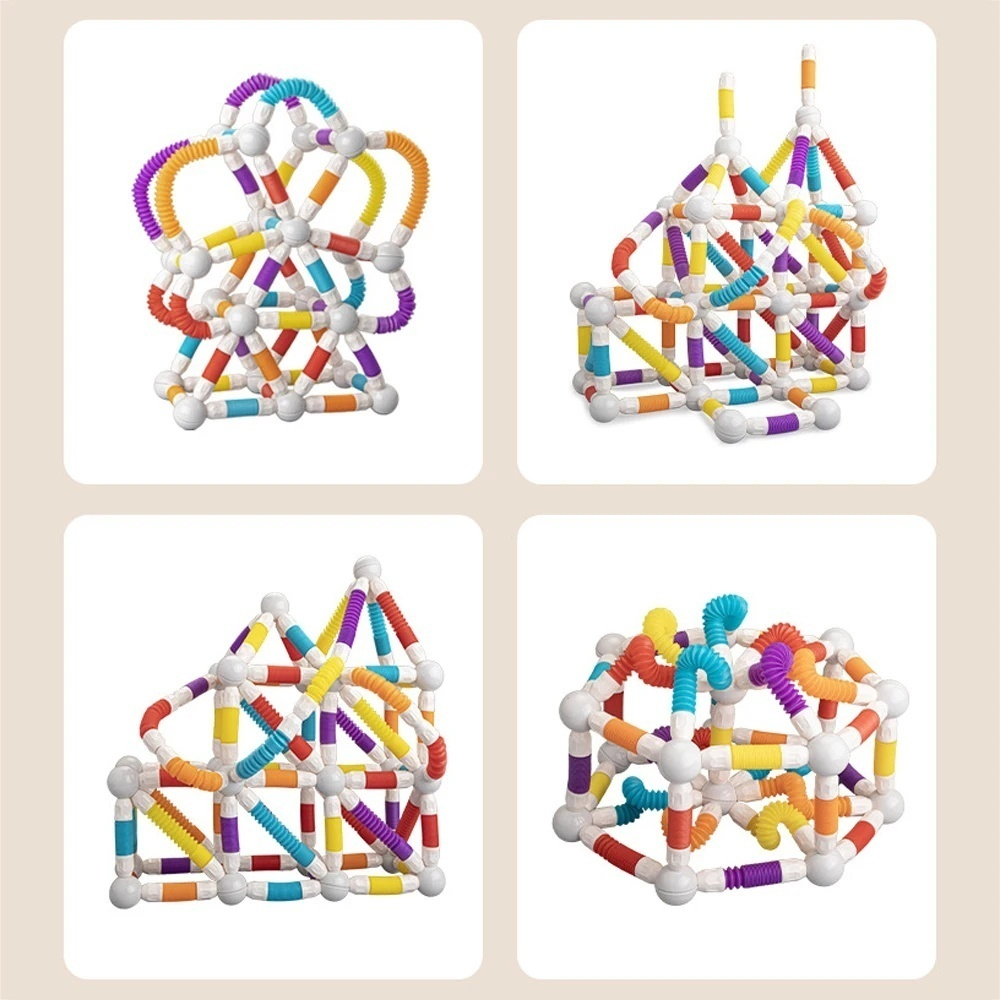 Set de constructie magnetic flexibil cu tuburi si bile, 45 piese, multicolor